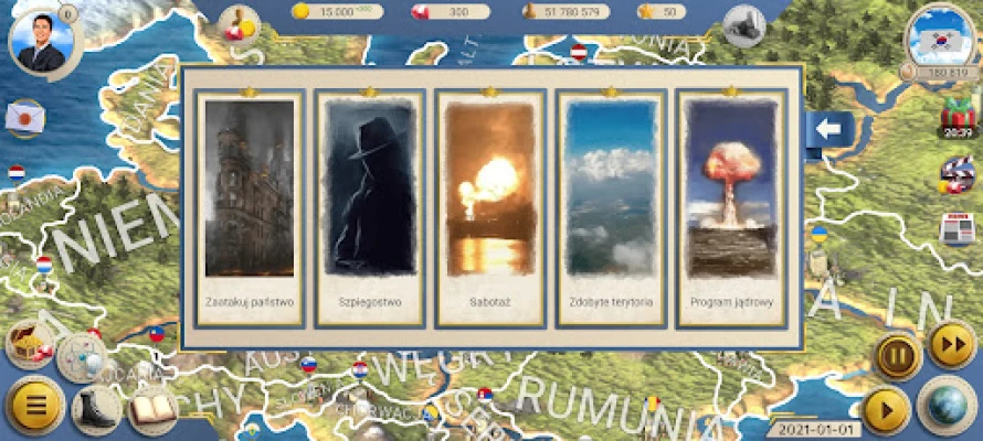 Sukces Twojej cywilizacji zależy od równowagi między siłą a dyplomacją. Zbuduj potężną flotę i wyszkol armię gotową bronić granic lub prowadzić podboje, anektując państwa i zabezpieczając cenne zasoby. Stawiaj lotniska, koszary i stocznie, wspierając swój arsenał zaawansowanym sprzętem wojskowym, a w razie potrzeby sięgnij po broń nuklearną, aby powstrzymać wrogów. Jednocześnie, dbaj o dobrobyt obywateli, wprowadzając ustawy i powołując ministerstwa – od zdrowia po kulturę i sport – by uczynić kraj bezpiecznym i prosperującym. Rozwijaj kontakty międzynarodowe, otwierając ambasady, podpisując traktaty handlowe, obronne i pakty o nieagresji. Aktywnie uczestnicz w pracach międzynarodowych organizacji, zgłaszaj rezolucje i sankcje, kształtując politykę globalną.